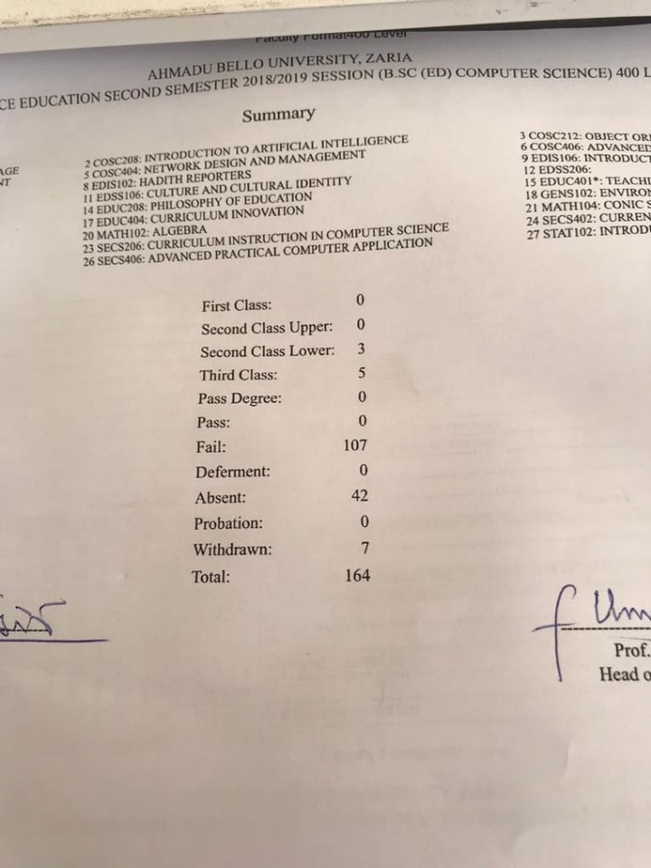 TREADING 400 LEVEL COMPUTER SCIENCE STUDENTS FINAL RESULT IN ABU ZARIA - нσт9נα вℓσg ⏮ ▶ ⏯ ⏭