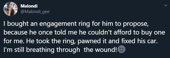 I bought an engagement ring, gave my boyfriend to propose to me, he sold it and used the money to fix his car – Lady - нσт9נα вℓσg ⏮ ▶ ⏯ ⏭