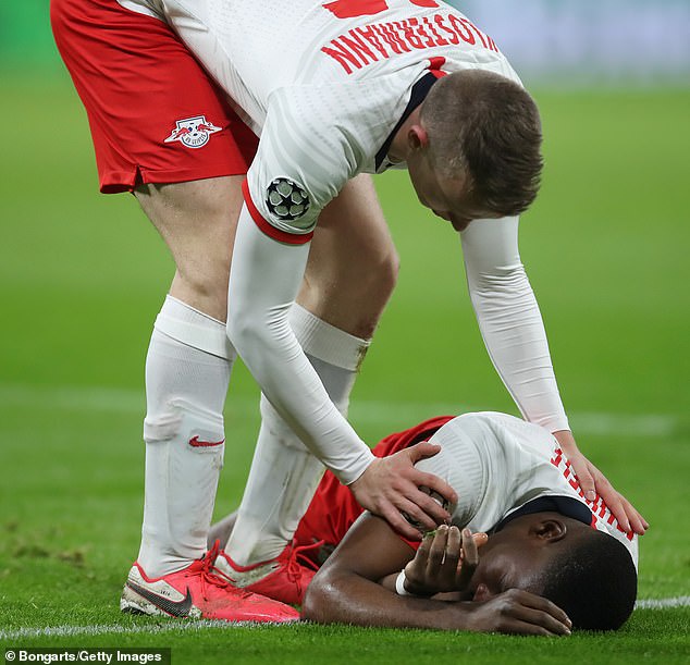 Leipzig defender Nordi Mukiele SWALLOWS HIS TONGUE and was knocked unconscious after horror accident against Tottenham - нσт9נα вℓσg ⏮ ▶ ⏯ ⏭