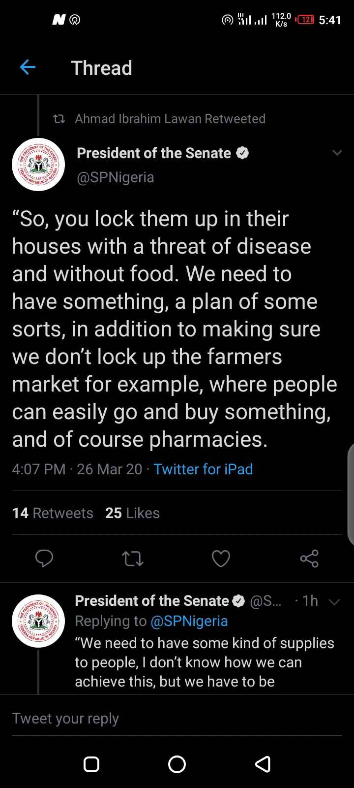 We Can't Lock People Up In Their Houses With A Threat Of Disease Without Food.Senate President Lawan - нσт9נα вℓσg ⏮ ▶ ⏯ ⏭