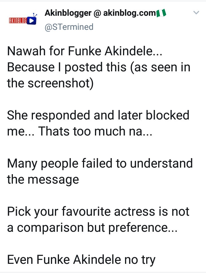 Funke Akindele blocked me because I posted this - Twitter User cries out - нσт9נα вℓσg ⏮ ▶ ⏯ ⏭