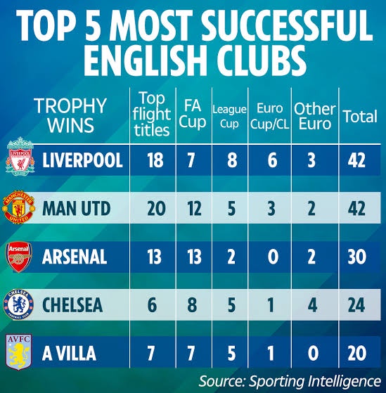 Man U, Liverpool And Arsenal Top The List Of The Most Successful Clubs In English Football History - нσт9נα вℓσg ⏮ ▶ ⏯ ⏭