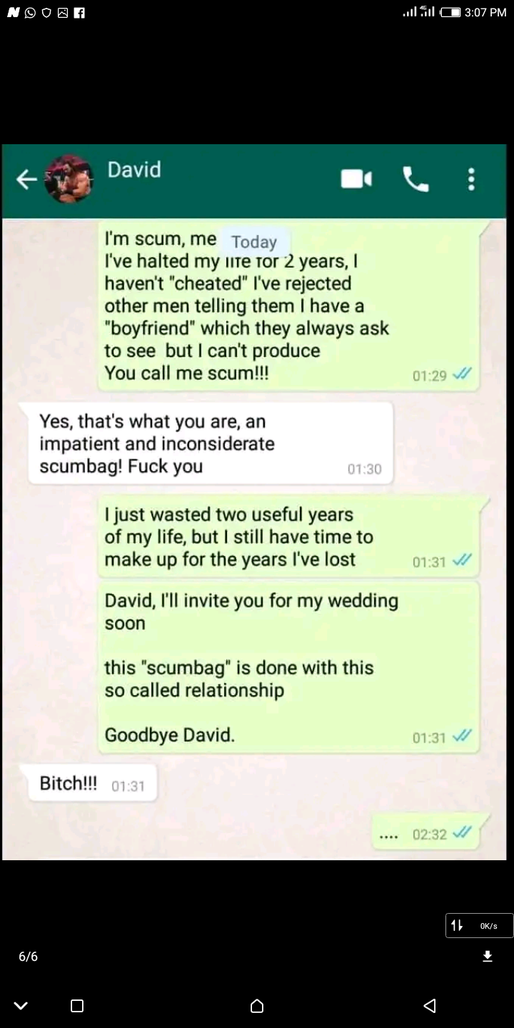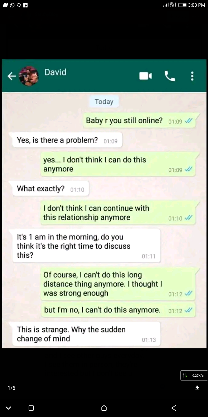 Screenshot: A breakup chat of a guy and a lady who were in a long distance relationship - нσт9נα вℓσg ⏮ ▶ ⏯ ⏭