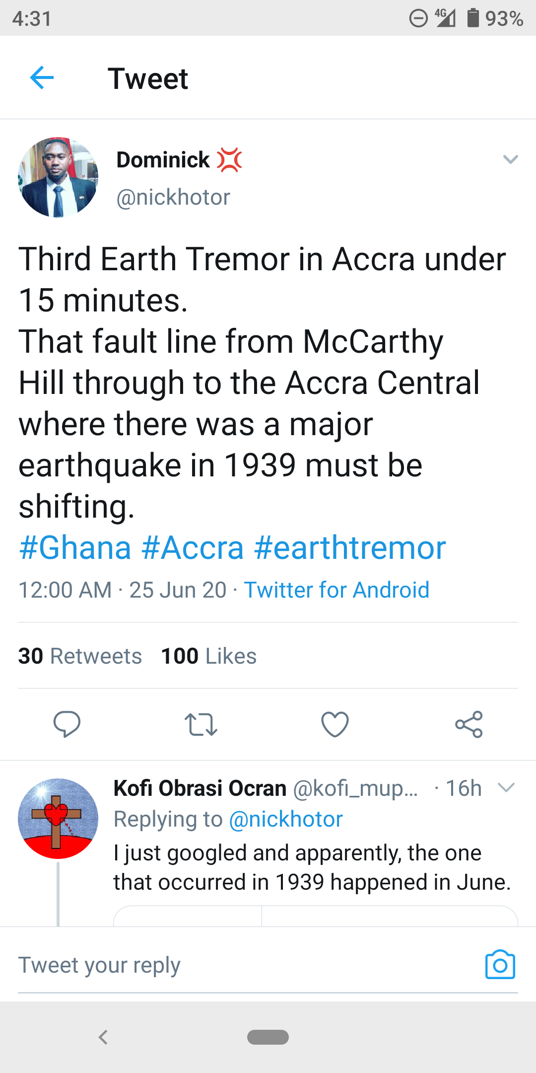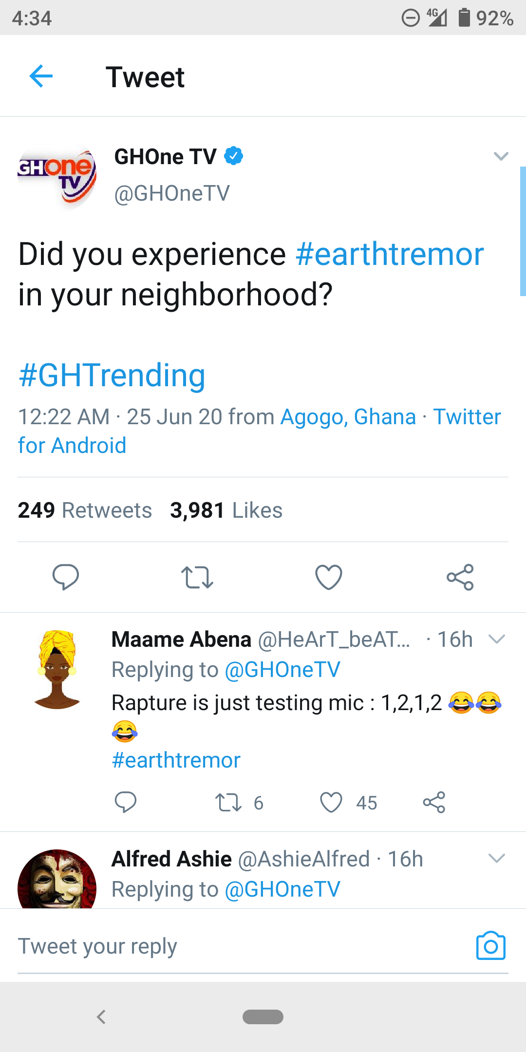 Ghanaians React on Twitter after Earthquake Rocks Ghana - нσт9נα вℓσg ⏮ ▶ ⏯ ⏭