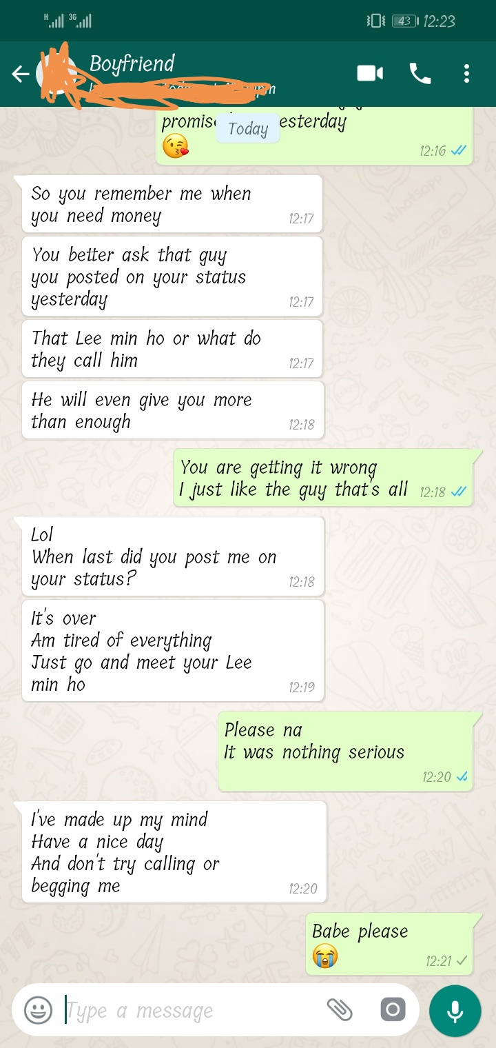 Nigerian Guy Allegedly Ends Relationship With Girlfriend Because Of Lee Min Ho; See Leaked Chats - нσт9נα вℓσg ⏮ ▶ ⏯ ⏭