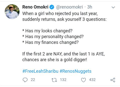 Reno to men:"If a girl who rejected you last year, suddenly returns, ask yourself these 3 questions" - нσт9נα вℓσg ⏮ ▶ ⏯ ⏭