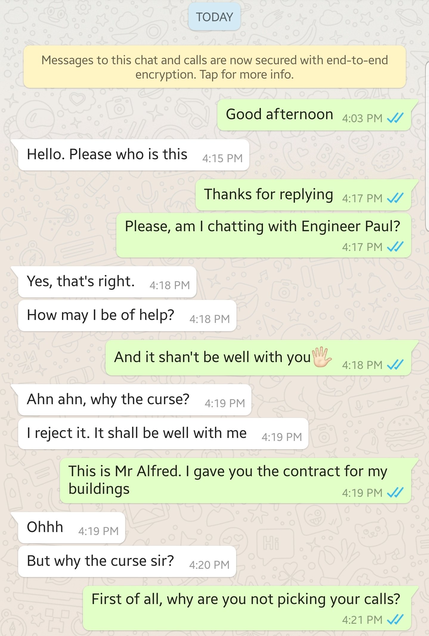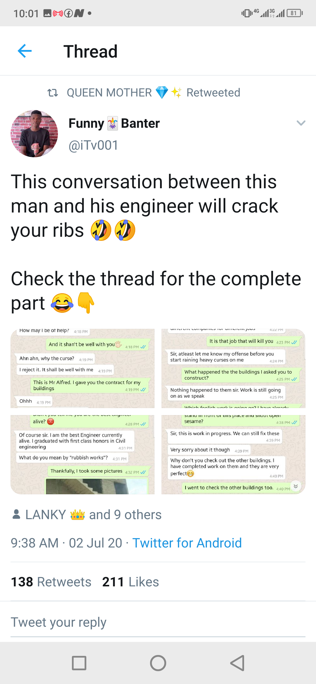 Fans react as a guy shares his WhatsApp conversation between him and his engineer. (Photos) - нσт9נα вℓσg ⏮ ▶ ⏯ ⏭