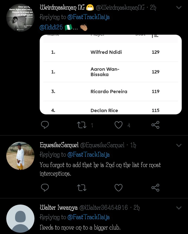"He's the Best Midfielder in the world" - Fans react after Wilfred Ndidi breaks new EPL record - нσт9נα вℓσg ⏮ ▶ ⏯ ⏭