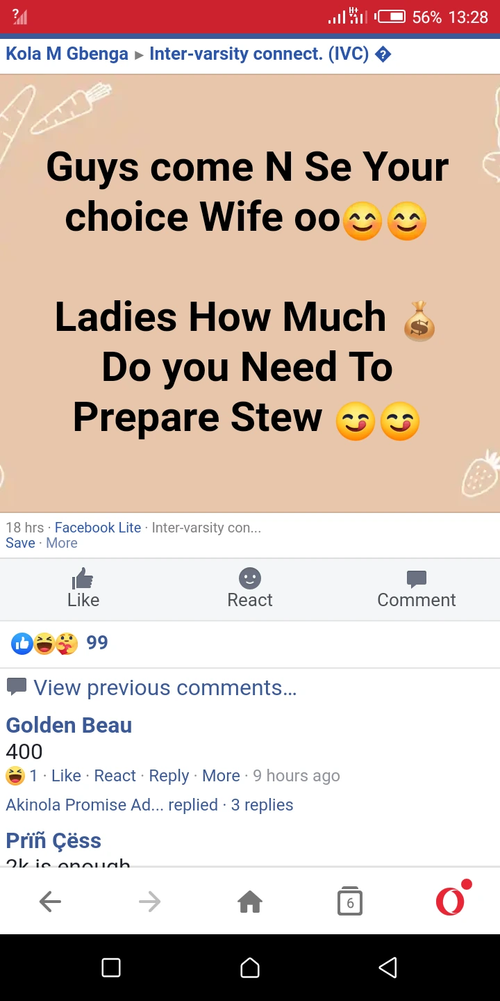 (See Funny Reaction) A Facebook Post Has Surfaced Online Asking Ladies Opinion on How much is Needed to Prepare Soup - нσт9נα вℓσg ⏮ ▶ ⏯ ⏭