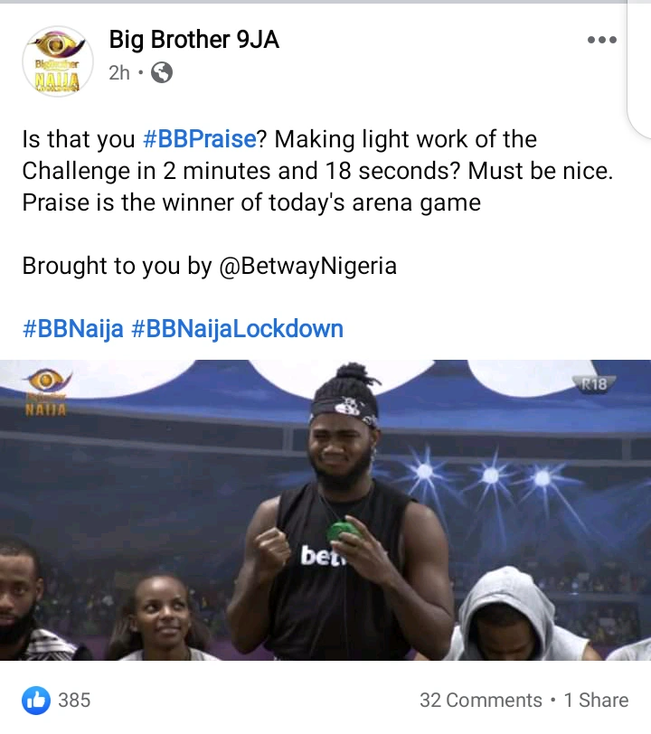 #BBN: Highlights From Show (Praise Won The Arena Game) - нσт9נα вℓσg ⏮ ▶ ⏯ ⏭