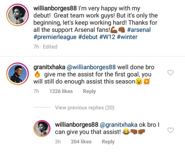 Lacazette reacts as Xhaka makes funny request from Willian - нσт9נα вℓσg ⏮ ▶ ⏯ ⏭