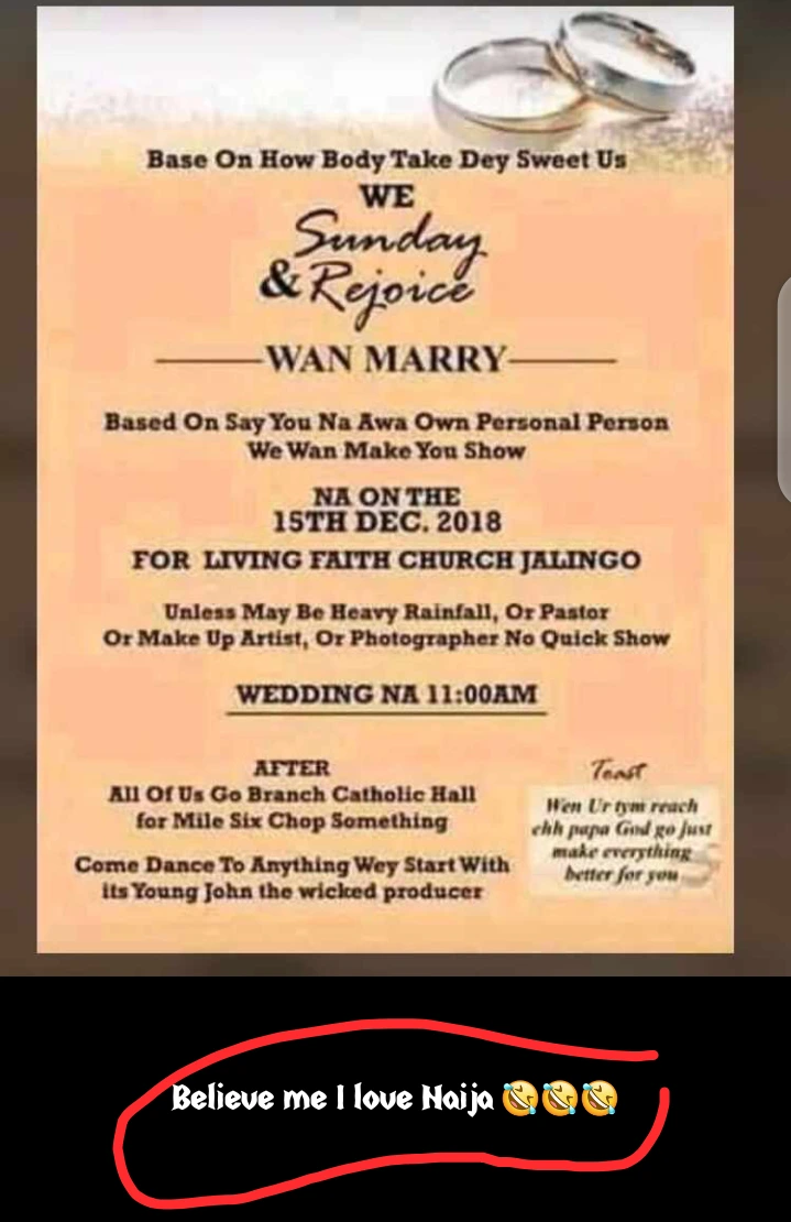 "Believe me, I love Naija"- Man says after he received strange and funny Wedding Invitation Card - нσт9נα вℓσg ⏮ ▶ ⏯ ⏭
