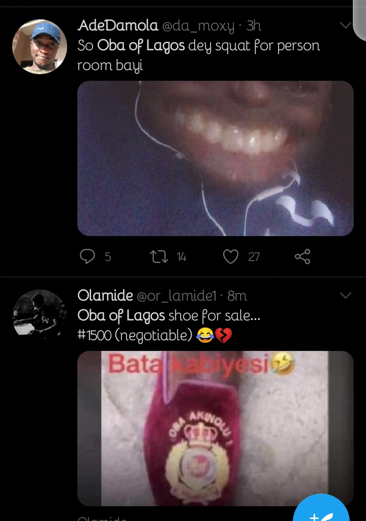 So Oba Of Lagos Dey Squat Now? See the funny Things their posting about Oba of Lagos - нσт9נα вℓσg ⏮ ▶ ⏯ ⏭