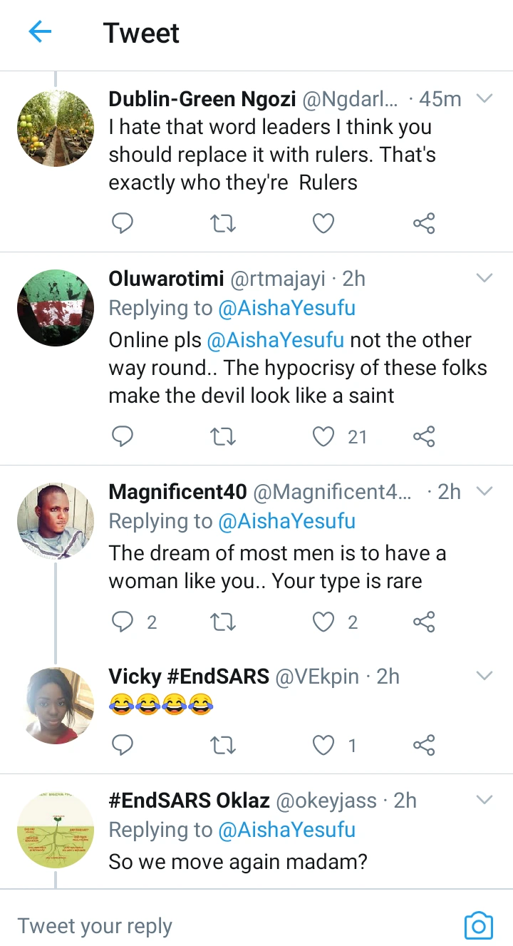 Congrats to Northerners: Aisha Yesufu finally replied Northerners who told her to lead a protest - нσт9נα вℓσg ⏮ ▶ ⏯ ⏭