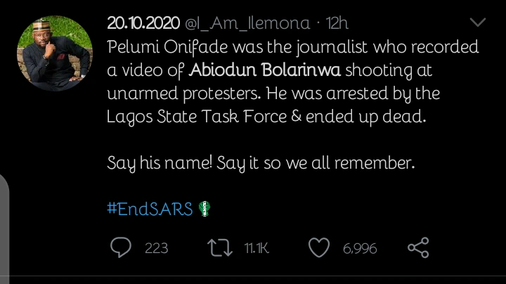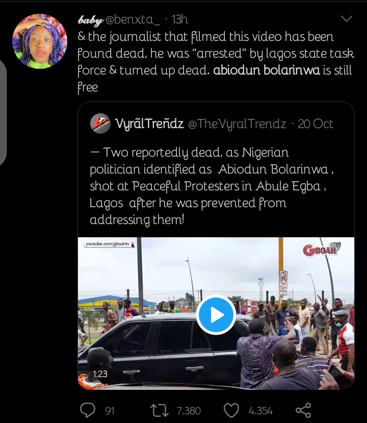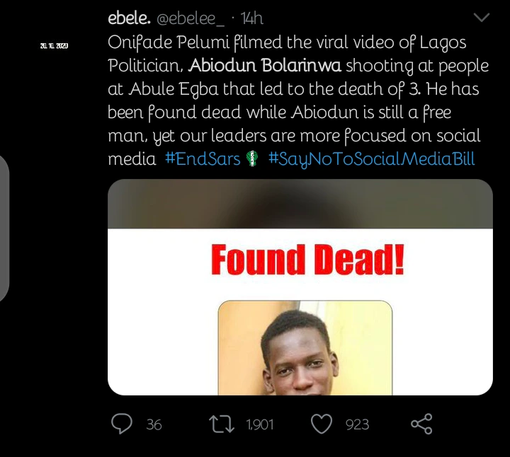 Reaction As Nigerians Spot Out Politician That The Deceased Journalist Filmed Shooting At Protesters - нσт9נα вℓσg ⏮ ▶ ⏯ ⏭