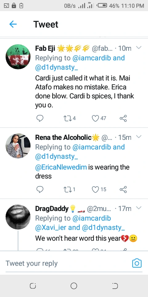 See What Cardi B Said About Erica's Dressing That Got People Talking On Twitter - нσт9נα вℓσg ⏮ ▶ ⏯ ⏭