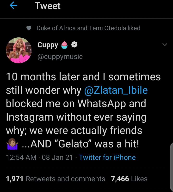 DJ Cuppy calls out Zlatan Ibile for blocking her on social media for over 10 months, see reactions - нσт9נα вℓσg ⏮ ▶ ⏯ ⏭