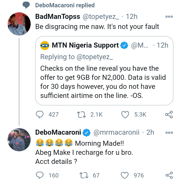 Mr Macaroni Gifts Twitter User Who Got Disgraced By MTN - нσт9נα вℓσg ⏮ ▶ ⏯ ⏭