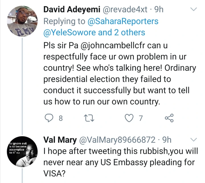 Read What Former US Ambassador Said About Sowore's Arrest That Attracted Reactions From Nigerians - нσт9נα вℓσg ⏮ ▶ ⏯ ⏭